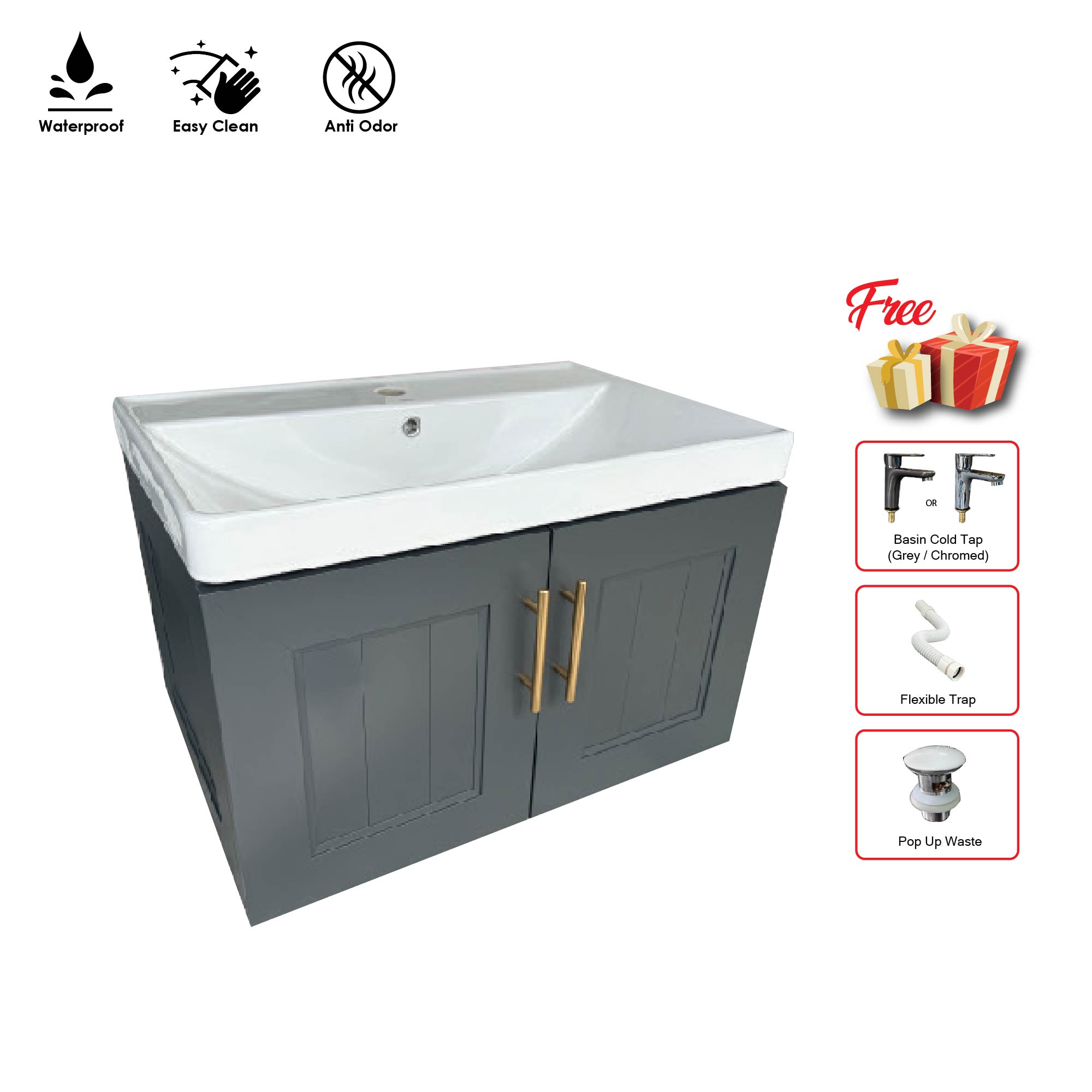 Ceramic Basin: (W)710 x (D)470 x (H)460 mmColour : Sandblast P.Coated Matte Dark Grey